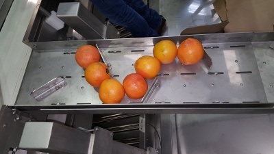 The robot is programmed to make the production chain efficient. It allows all workstations to be operational simultaneously without any loss of time. Thus, the empty trays are replenished with whole citrus fruits and then distributed again to the operators.